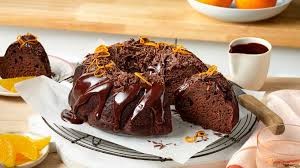 Place the cake on a serving platter and pour over the ganache icing. Set aside to set. Sprinkle it with grated chocolate and orange zest. Serve with orange segments.